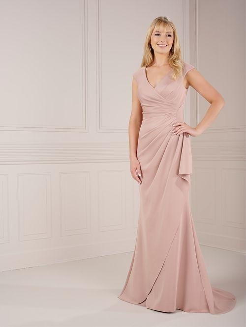 Slim style in Scuba jersey fabric, body hugging, surplice V-neck and side pleated front bodice. Side