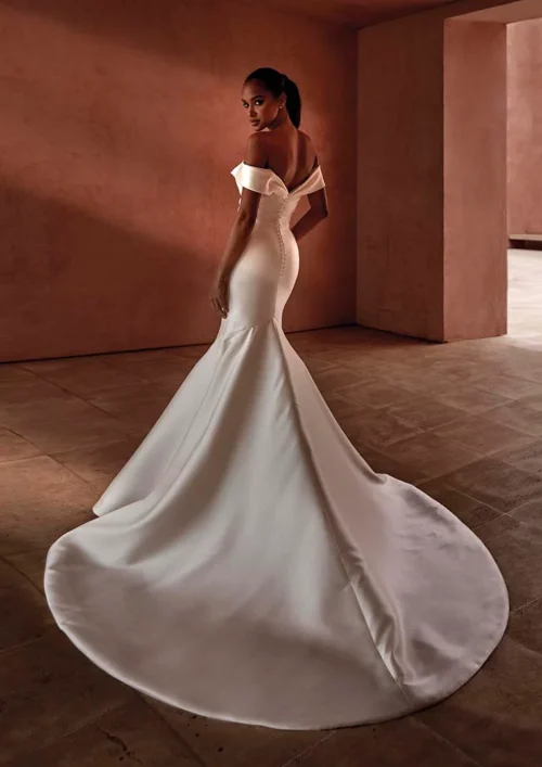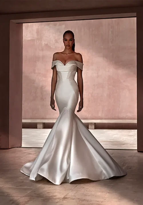 A sophisticated take on the classic mermaid gown crafted in Mikado, with gorgeous ruffled skirt and