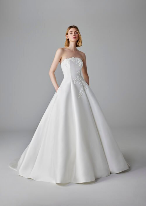 Breathtaking mikado ballgown with delicate floral beading on the bodice trickling into the skirt