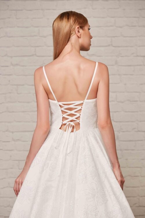 • Due to the delicate nature of bridal fabrics (lace, satin, tulle, etc.) and embellishments (beads, sequins, etc.), minor variations in texture and pattern may occur. These are not considered defects but are part of the handcrafted process.