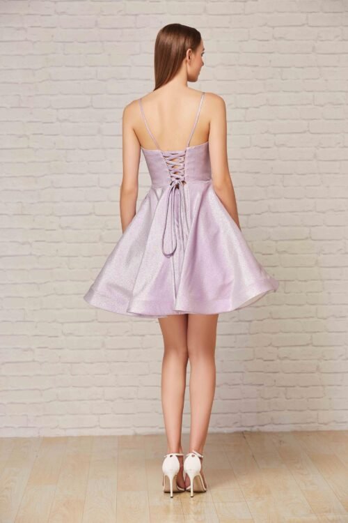 All over sparkle grade 8 grad dress with a v-neckline and a corset back