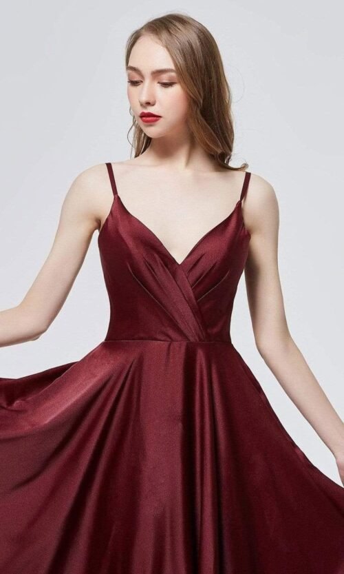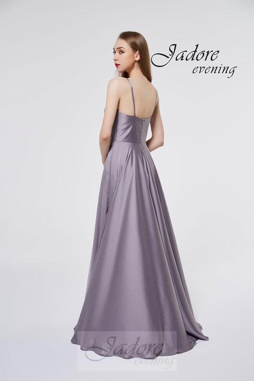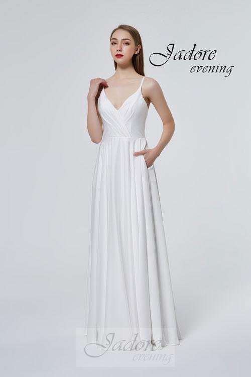 Soft satin a-line gown with ruched bodice and side seam pockets