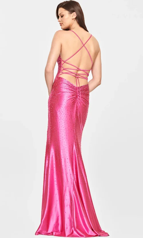 Stretch Satin fitted gown with shimmering heat stones and a low corset back